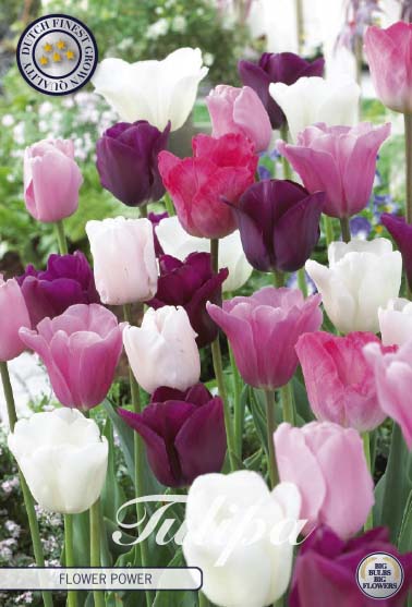 | Extra omschrijving | Introducing Flower Power Garden Tulips - Add vibrancy to your garden with 'Flower Power'. Featuring white, pink, and purple hues, these tulips thrive in fall. Plant from April to June for blooms from September to January. Ideal for half sun/half shade, they reach heights of 40-50 cm. Each pack contains 10 bulbs for a stunning display. Don't miss out on the charm of Flower Power Garden Tulips! |